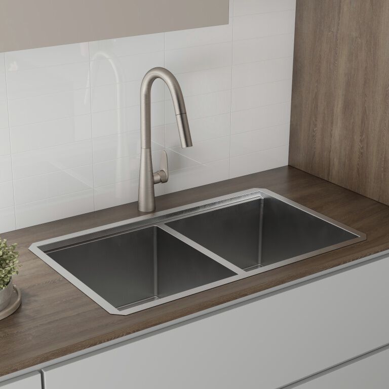 Llave monomando para cocina línea Essen Round® en niquel cepillado