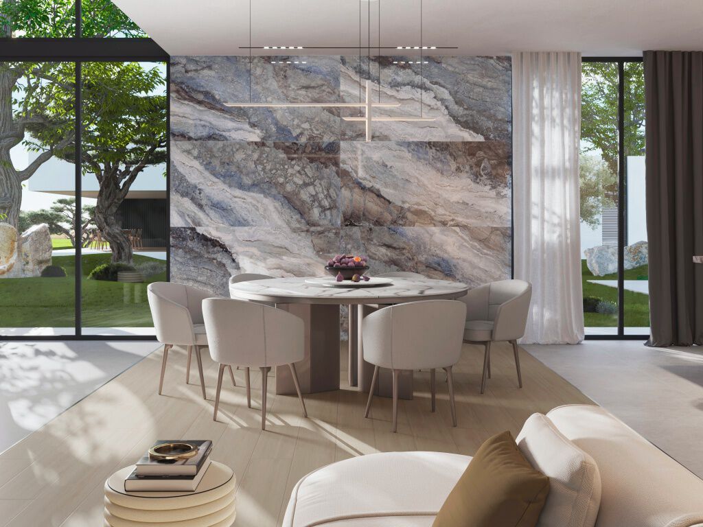 Comedor Lux Marble Azul, Beige y Blanco